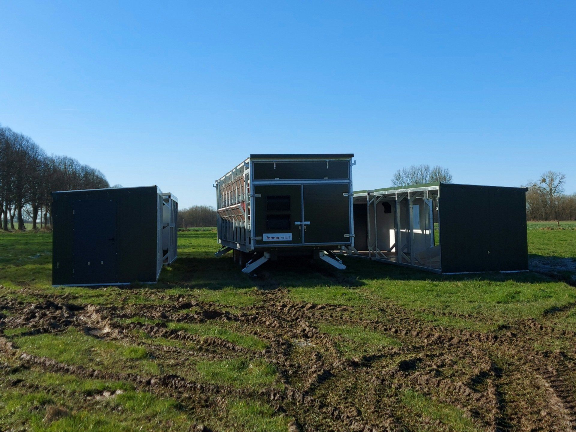 Mitten im dritten Wintersturm des Jahres traf der erste von drei mobilen Hühnerställen ein. Um die Wiese nicht weiter zu beschädigen wurde der Aufbau zunächst verschoben. Bald können Sie aber auf dieser Wiese nicht nur die Ställe sondern auch deren neuen Bewohner, 1800 Legehennen bewundern. Bitte nicht füttern! Hiermit investieren wir in eine noch tiergerechtere Haltung unserer Legenhennen, da diese jederzeit auf frisches, grünes Gras umgezogen werden können.